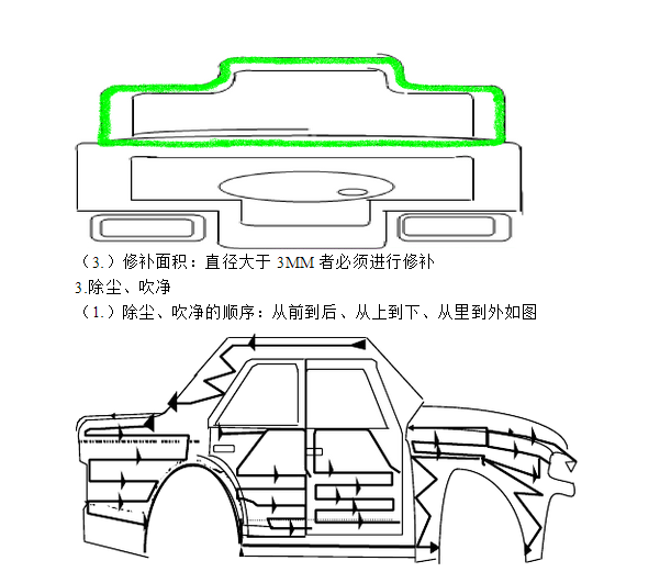 1. 電泳打磨:對(duì)電泳烘烤后的車身顆粒、電泳流痕、焊裝殘?jiān)炔涣键c(diǎn)進(jìn)行打磨 2. 修補(bǔ)膠泡:對(duì)電泳烘烤后的密封膠泡進(jìn)行修補(bǔ) 3.除塵、吹凈:對(duì)打磨后的車身進(jìn)行全車吹凈、除塵