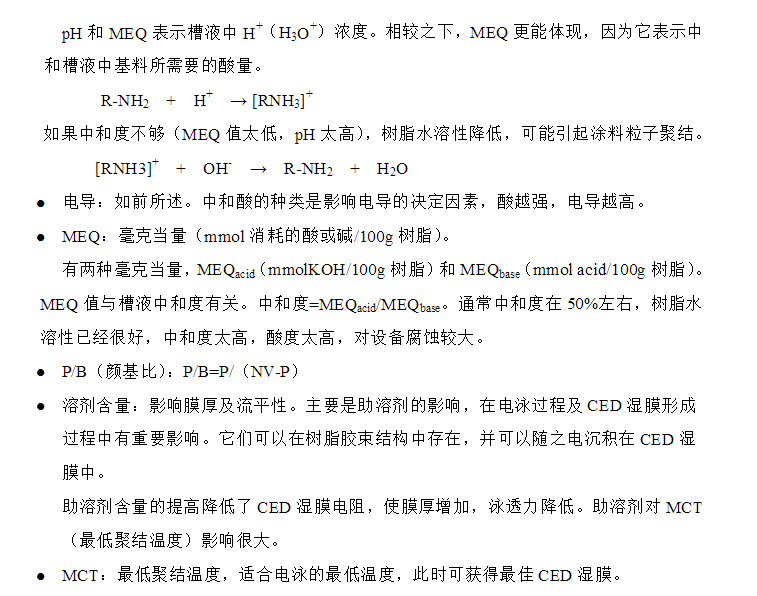3. 加速新溶液熟化和控制工作液中的溶劑含量 4. 電泳漆的回收利用