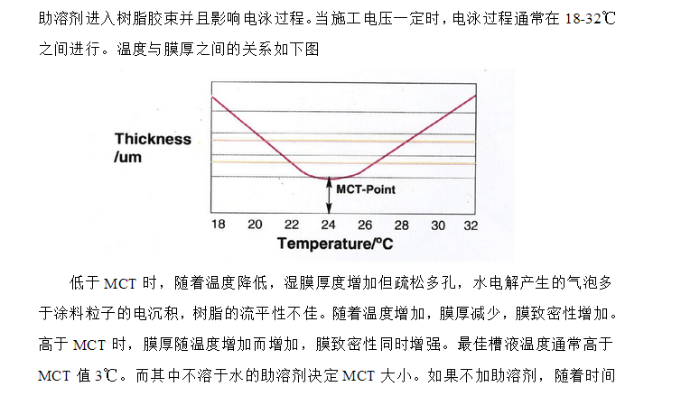的推移,助溶劑逐漸減少,在這種情況下,MCT曲線向右移動(dòng)。因此,可以調(diào)節(jié)助溶劑含量得到所需的**佳MCT,**佳槽液溫度及**佳漆膜。